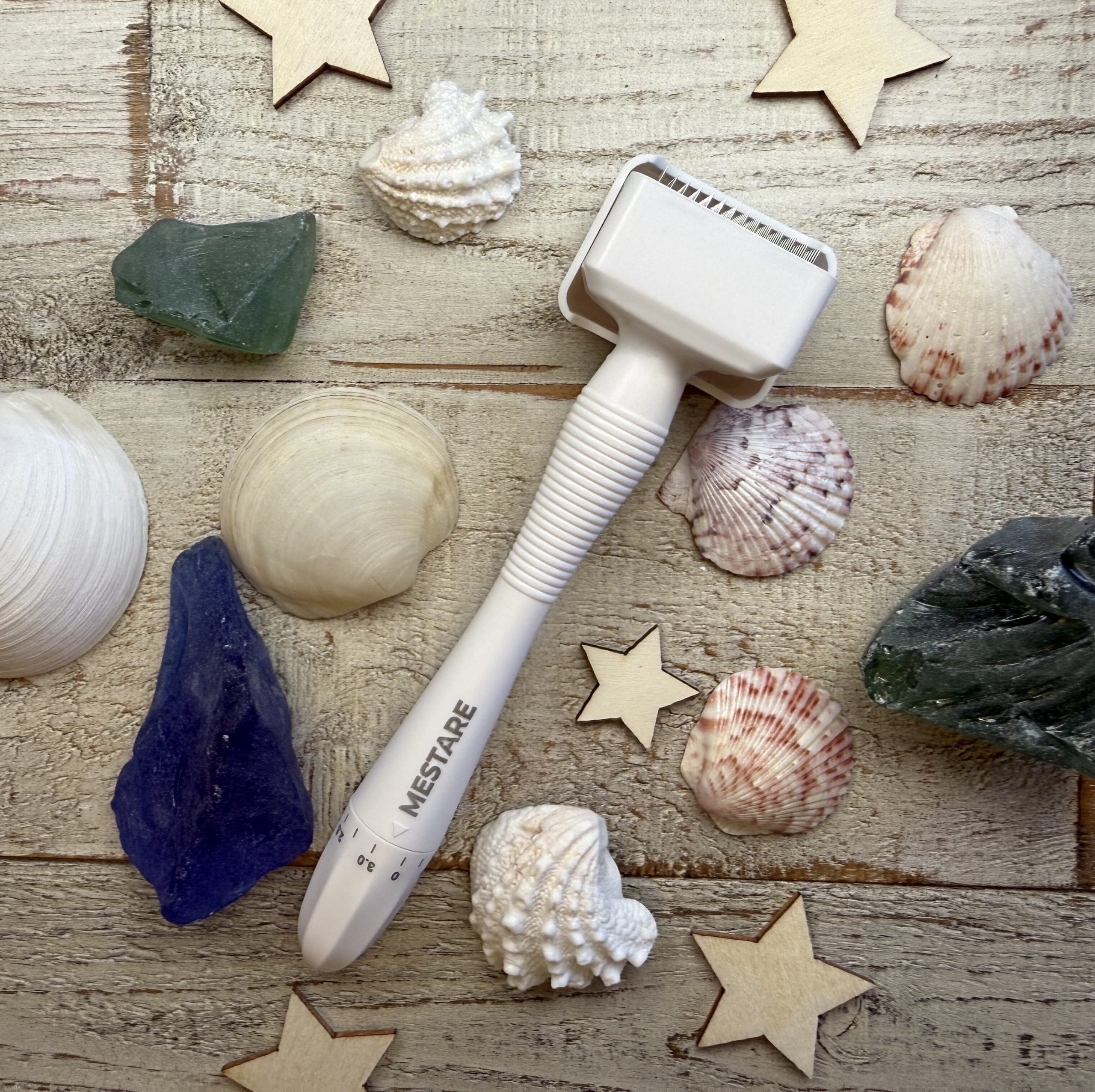 The Mestare Microneedle Derma Stamp is our branded, adjustable-depth tool designed for safe, controlled collagen stimulation at home.